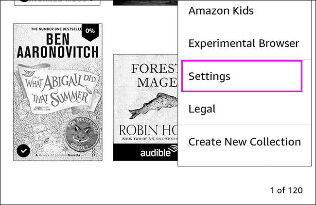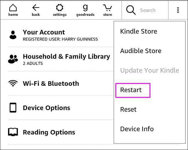 Son olarak, aynı zamanda Kindle'ınızı menüden yeniden başlatabilirsiniz. Ana ekranda sağ üst köşedeki üç küçük noktaya dokunun.