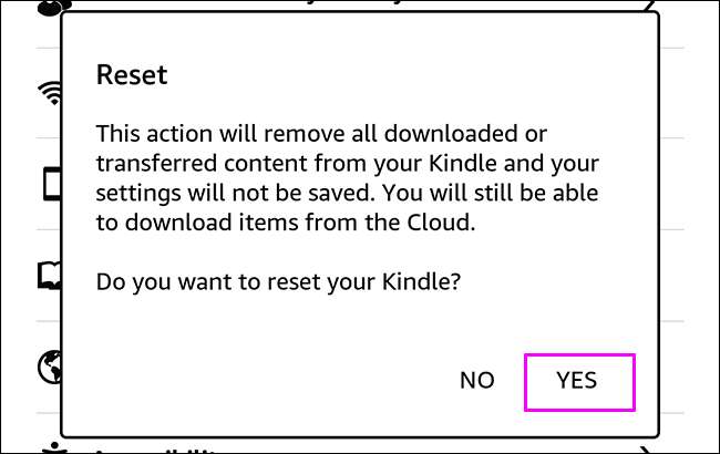 "Evet" e dokunun ve Kindle yeniden başlatılırken bekleyin.