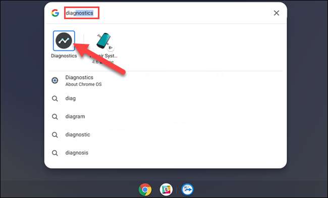 Arama kutusunu girin veya basitçe "Teşhis" yazmaya başlayın. Sonuçlarda göründüğünde "Diagnostics" uygulamasını seçin.