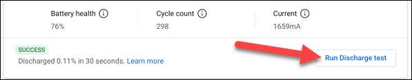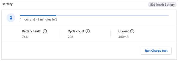 ChromeBook'unuzun takılıp takılıysa bağlı olarak "Deşarj Testini Çalıştır" veya "Çalıştır Şarj Testini Çalıştırın" seçeneğini göreceksiniz. Bu testler, cihazınızın şarj edilmesi veya boşaldığı hızı ölçecektir.