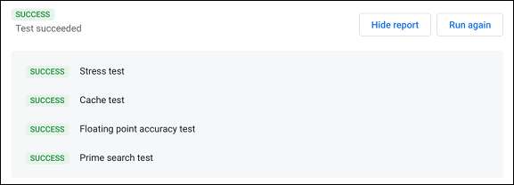 Daha fazla bilgi almak için "CPU testini çalıştırın." Bu, CPU'nun iyi çalıştığından emin olmak için birkaç test çalıştıracaktır. Burada yeşil "başarı" mesajlarını görmek istiyorsunuz.