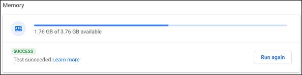 Son bölüm "Hafıza" dir. Mavi bir ilerleme çubuğu, mevcut toplam hafızanın ne kadarının kullanıldığını gösterir. Bazı ek detaylar için "Bellek Testini Çalıştır" ı tıklayın. Bu testin 15 dakika süreceği konusunda uyarılmalıdır. Yine, yeşil "başarıyı" görmek istiyorsun.