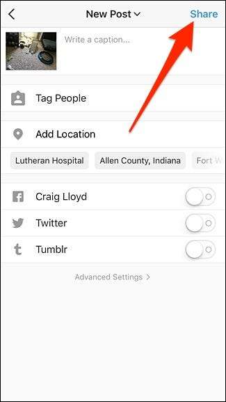 Instagram'a geri dönün ve "Paylaş" a dokunun.
