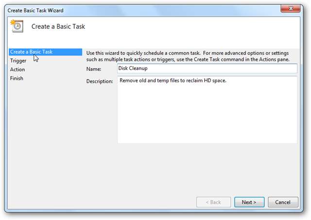 Temel Görev Oluştur Sihirbazı açılır ve buradan görev için bir ad ve bir açıklama yazın ve ardından İleri'yi tıklayın.
