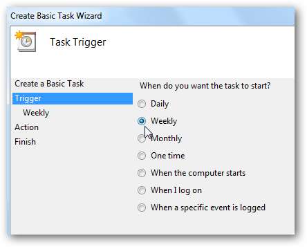 Şimdi Disk Temizlemenin ne sıklıkta çalışmasını istediğinizi seçin… Haftalık, Günlük, Aylık, Bir Kez… vb. Ne sıklıkla çalıştırdığına dair doğru ya da yanlış cevap yok. Bu tamamen size bağlıdır ve bazı farklı programları denemek isteyebilirsiniz. Bu örnekte haftalık olarak seçeceğiz.