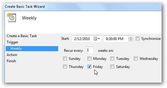 Haftalık çalışacak şekilde ayarladığımız için, ne zaman başlayacağını, ne sıklıkta tekrar edeceğini ve haftanın hangi gününde çalıştırılacağını planlamamız gerekiyor.