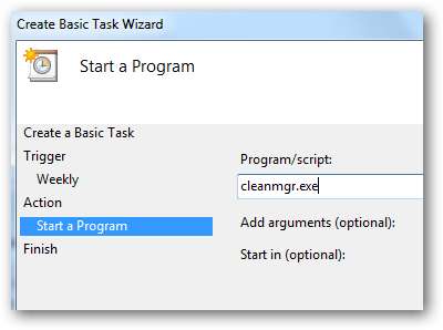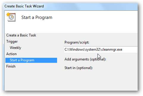 Program / komut dosyası altında Disk Temizleme yolunu C: \ Windows \ system32 \ cleanmgr.exe olarak göreceksiniz.