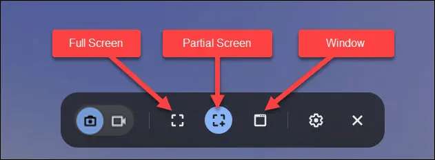 Üç farklı ekran görüntüsü yönteminiz var. Tam ekranı, kısmi ekranı veya belirli bir pencereyi yakalayabilirsiniz. Devam etmek için seçeneklerden birini seçin.