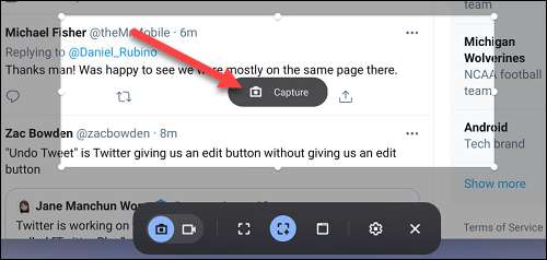 Kısmi ekran görüntüsü için, fare imlecinizi ekran görüntüsü için ne istediğinizi seçmek için bir alana sürüklemeniz gerekir, ardından "Yakala" ı tıklayın.