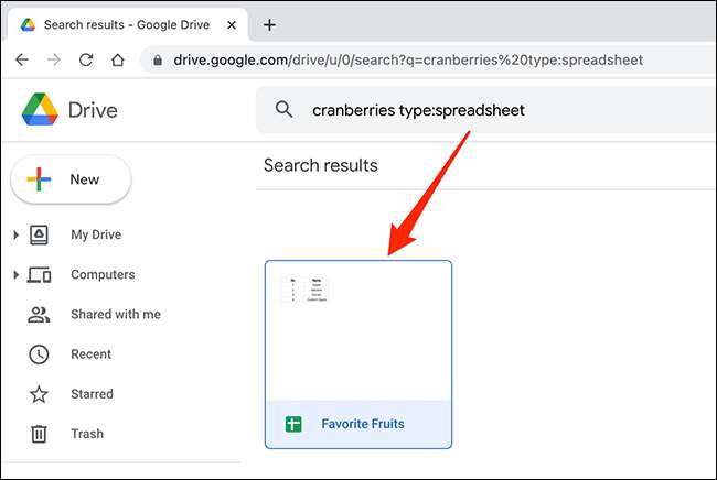 Arama sonuçları ekranında, aramanızla eşleşen elektronik tabloları listeleyecektir. Yaprak düzenleyicisinde açmak için buradaki herhangi bir elektronik tabloyu çift tıklatın.