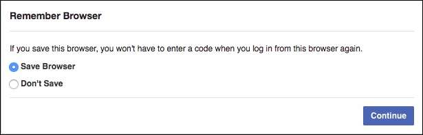 Kodunuzu girdikten sonra, o tarayıcıyı saklamak isteyip istemediğiniz sorulacaktır, böylece bu tarayıcıyı kullanarak Facebook'ta bir sonraki oturum açışınızda bir onay kodu girmeniz gerekmez.