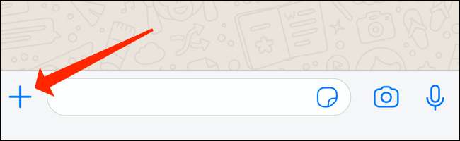 WhatsApp'ta kaybolan ortam dosyalarını göndermek için, uygulamayı başlatabilirsiniz. Android veya iPhone ve herhangi bir konuşmayı açın. İPhone için WhatsApp'ta, sohbet kutusunun solundaki "+" (Plus) düğmesine dokunun.