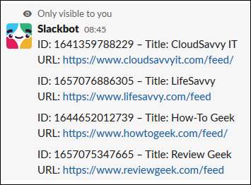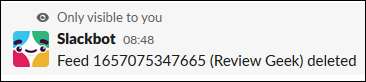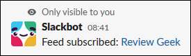 Slackbot, beslemeyi eklediğinizi onaylar.