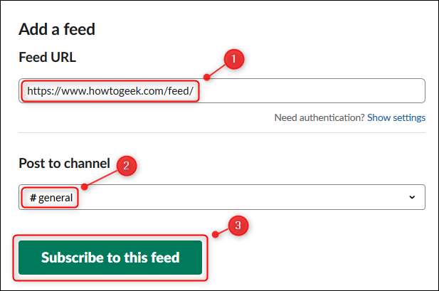 "Beslemeleriniz" bölümünün altında, bir üye olduğunuz herhangi bir halka açık veya özel kanala bir yayın ekleyebilirsiniz. Besleme adresine ekleyin, gönderilecek bir kanal seçin ve "Bu yemeye abone olun."