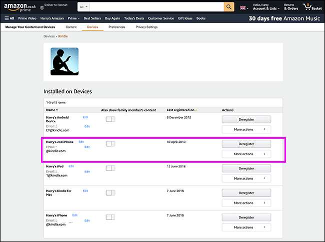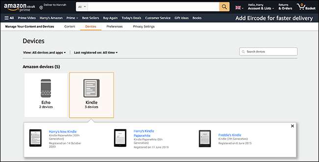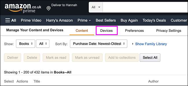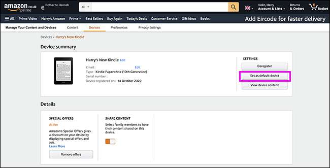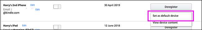 Altında “Amazon Devices”, “Kindle” tıklayın ve ardından varsayılan olarak ayarlamak için istediğiniz cihazı tıklayın.