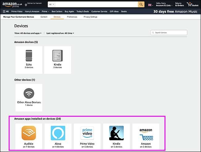 altında Amazon aynı Cihazları Yönet ekranından “Cihazlar yüklü Amazon Apps”, “Kindle” ı seçin.