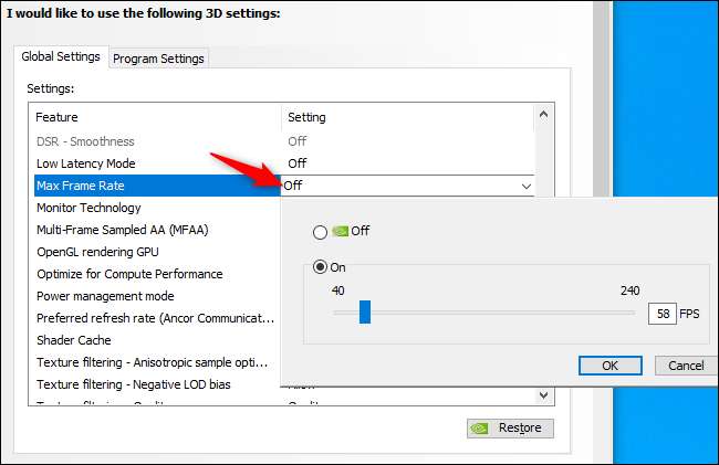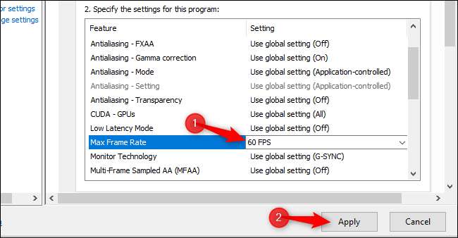 "Maksimum Kare Hızı" seçeneğini arayın, tıklayın ve istediğiniz ayarı seçin. Varsayılan olarak, her oyun "Genel ayarı kullan" olarak ayarlanmıştır — Global Ayarlar sekmesinde seçtiğiniz ayarı kullanacaktır.