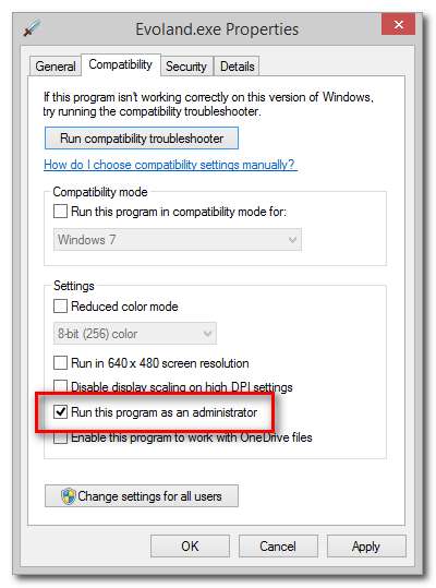 Bu değişikliği yalnızca hesabınıza uyguluyorsanız devam edin ve Tamam'ı tıklayın. Diğer kullanıcıların (özellikle uygulamayı yönetici ayrıcalıklarıyla başlatması gereken yönetici olmayanların) da düzeltmeye ihtiyacı olursa, Tamam'ı tıklamadan önce "Tüm kullanıcılar için ayarları değiştir" seçeneğini işaretlediğinizden emin olun.