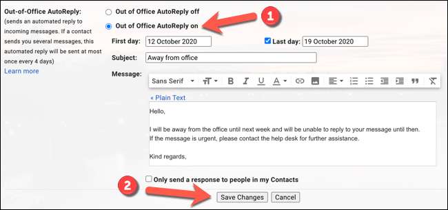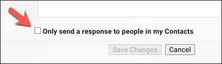 Office dışını sınırlamak istiyorsanız, Gmail İletişim bilgileri Yalnızca, "sadece kişilerimdeki kişilere bir cevap gönder" onay kutusunu işaretleyin. Bu onay kutusu, örneğin tanımadığınız veya otomatik e-postaları tanımayacağınız kişilere otomatik olarak yanıtlamanızı engelleyecektir.