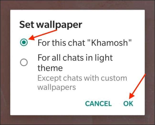 Açılır iletişim kutusundan, "bu sohbet için" seçeneğini seçtiğinizden emin olun ve "Tamam" düğmesine dokunun.
