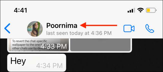 İPhone kullanıcıları için işlem biraz farklıdır. Whatsapp'ı açın iPhone ve bir konuşmaya gidin. Burada, sohbetin üst kısmında bulunan profil resmine veya adına dokunun.