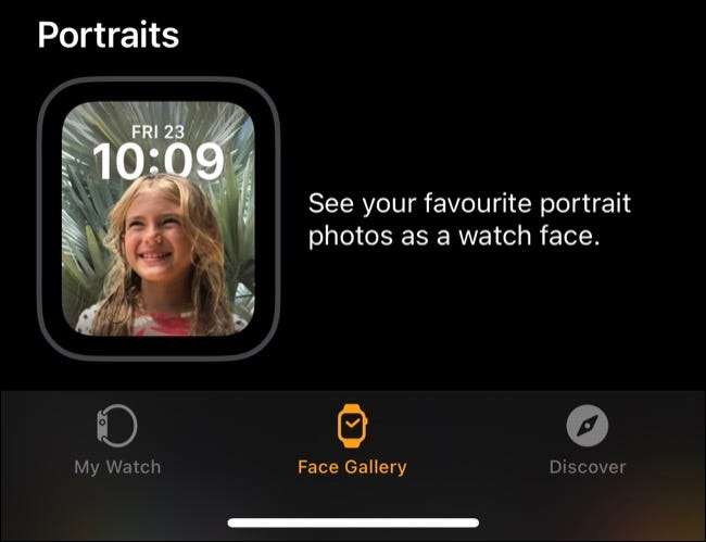 Portre fotoğraflarınızla elinizle, iPhone'unuzdaki Watch uygulamasını başlatın. Ekranın alt kısmında Yüz Galeri sekmesine dokunun. Portreler vurana kadar aşağı kaydırın ve üzerine dokunun.