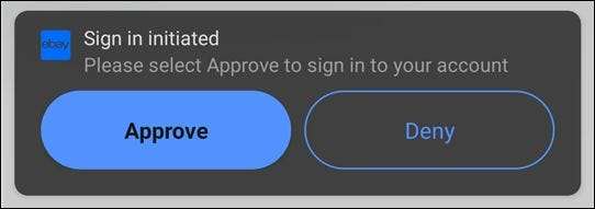 Bundan sonra, eBay web sitesine giriş yaptığınızda, eBay uygulamanıza bir bildirim gönderilecektir. Web sitesine erişmek için "Onay" üzerine dokunun.