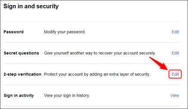 "2 adımlı doğrulama" seçeneğinin yanındaki "Düzenle" bağlantısını tıklayın.