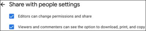 Burada editörlerin değişen izinleri ve paylaşımını yönlendirmeyin. Ve izleyiciler ve yorumcuların indirimi, yazdırmayı ve kopyalama işlemlerini görmeleri için yeteneklerini devre dışı bırakabilirsiniz. Tercihinize göre bu izinleri kaldırmak için kutuların işaretini kaldırın.