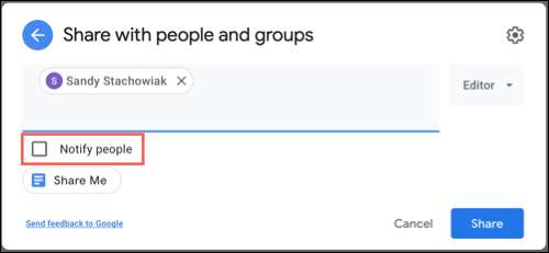 Burada paylaştığınız şeyleri bilgilendirmek istemiyorsanız, İnsanlar Bando Bildiri kutusunun işaretini kaldırdığınızdan emin olun ve "Paylaş" i tıklayın. Bunları belgeye kendi bağlantınızla kendinize bildirmek istiyorsanız bunu yapmayı seçebilirsiniz.