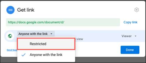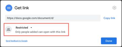 Kullanmak Kısıtlı Yukarıdaki bölgeye belirli insanlar ekleme ile birlikte. Bu, bağlantıya rastlarsa, belgeye erişmekten paylaştığınız kişilerden başka birini kısıtlar.