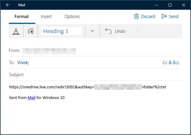 Mail istemcisini açın ve dosyanın alıcısının e-posta adresini girin. Paylaşılan OneDrive Bağlantısını yapıştırmak için e-posta iletisinin gövdesine sağ tıklayın ve "Yapıştır" ı seçin. İletiyi aldıktan sonra, alıcının paylaşılan dosyanıza erişebilmek için bağlantıya tıklaması yeterlidir.