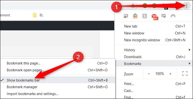 Chrome'u çalıştırın, menü simgesini tıklayın, "Yer İşaretleri" nin üzerine gelin ve ardından "Yer İşaretleri Çubuğunu Göster" i tıklayın. Alternatif olarak, Ctrl + Shift + B (Windows'ta) veya Command + Shift + B (macOS'ta) tuşlarına basabilirsiniz.