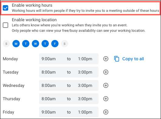 Çalışma saatlerini etkinleştirmek için yanındaki onay kutusunu tıklayın. Sonra aşağıda, çalışmayı planladığınız haftanın her gününü tıklatın.