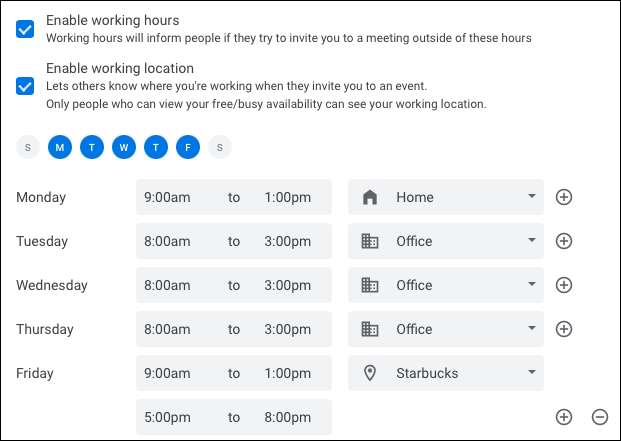 Haftanın her günü için kolayca çalıştığınız her gün için bir konum oluşturabilirsiniz. Ayarların aynı alanında çalışma konumunu etkinleştirme kutusunu işaretleyin.