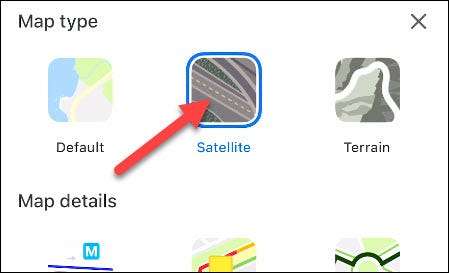Sonra, menünün "Harita Tipi" bölümünden "Uydu" seçeneğini seçin.