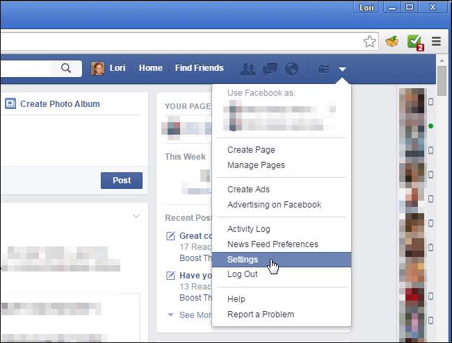 Arkadaşlarınızın sizi fotoğraflarda etiketlemesini zorlaştıracak ayarı değiştirmek için Facebook hesabınızda oturum açın ve ana sayfanızın üst kısmındaki mavi çubuğun sağ tarafındaki aşağı oku tıklayın. Açılır menüden "Ayarlar" ı seçin.