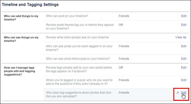 "Kullanıcıların eklediği ve etiketleme önerilerini nasıl yönetebilirim" bölümünde, "Size benzeyen fotoğraflar yüklendiğinde etiket önerilerini kim görüyor" seçeneğinin sağındaki "Düzenle" bağlantısını tıklayın.