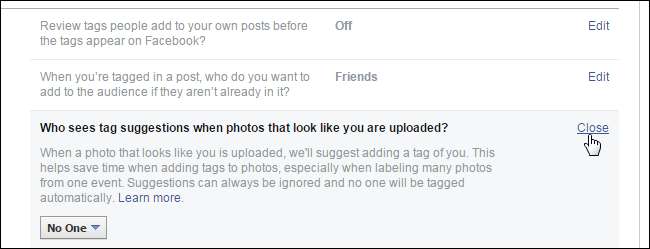Bu ayarı değiştirmenin, insanların Facebook'ta fotoğraflarınızı paylaşmasını ve sizi etiketlemesini engellemediğini unutmayın. Sadece bir fotoğrafta yüzünüz tanındığında görüntülenen öneriyi kaldırır.