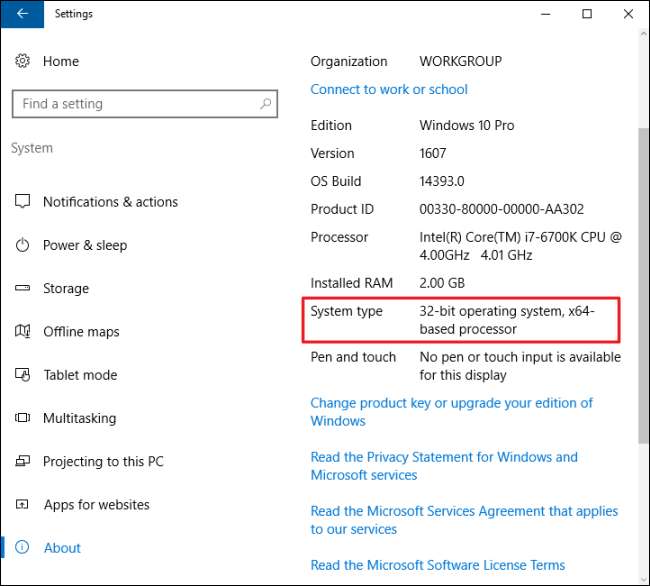 Sisteminizde ilk girişi görürseniz, bu makaleye gerçekten ihtiyacınız yoktur. İkinci girişi görürseniz, Windows'un 64 bit sürümünü sisteminize hiçbir şekilde yükleyemezsiniz. Ancak sisteminizde son girişi görüyorsanız - "32 bit işletim sistemi, x64 tabanlı işlemci" - o zaman şanslısınız demektir. Bu, Windows 10'un 32 bit sürümünü kullandığınız anlamına gelir, ancak CPU'nuz 64 bit sürümü çalıştırabilir, bu nedenle görürseniz sonraki bölüme geçme zamanı gelmiştir.