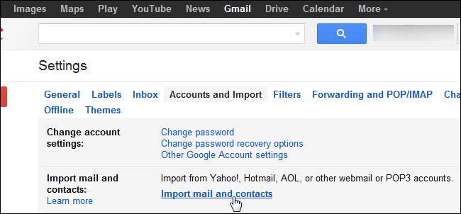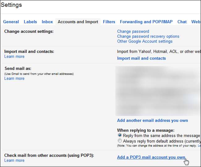 Gmail’in posta alma özelliğini kurmak için, Sahip olduğunuz bir POP3 posta hesabını ekleyin Hesaplar ve İçe Aktarma sekmesindeki bağlantı.