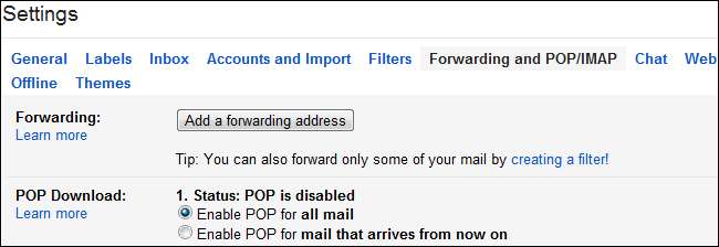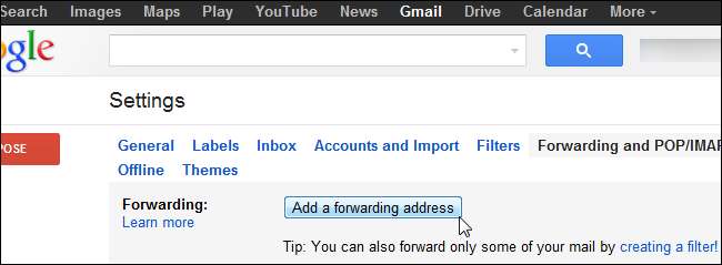 Bir Gmail hesabından geçiş yapıyorsanız, Yönlendirme adresi ekleyin Gmail’in Ayarlar ekranındaki Yönlendirme ve POP / IMAP sekmesinin altındaki düğmesine tıklayın.