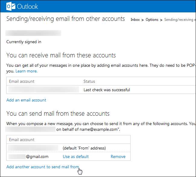 Outlook.com'da, Diğer hesaplardan e-posta gönderme / alma bağlantı ve tıklayın E-posta hesabı ekleyin .