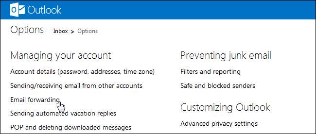 Eski hesabınız, sonunda tüm Hotmail kullanıcılarına sunulacak olan Outlook.com'u kullanıyorsa, E-posta yönlendirme Outlook Diğer posta ayarları ekranındaki bağlantı.