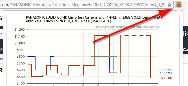 Satın almak istediğiniz her öğeyi aramak için ikinci bir web sitesi açmak istemiyorsanız, Camelizer uzantısını indirebilirsiniz. Krom , Firefox , ve Safari . Bu, Amazon'da gezinirken CamelCamelCamel’in verilerine erişmenizi sağlar — fiyatlandırma grafiklerini görmek için araç çubuğunuzdaki Camelizer simgesini tıklamanız veya URL’yi siteye yapıştırmanız yeterlidir.
