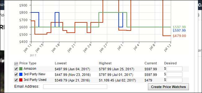 Amazon, ürünlerinde fiyatları her zaman ayarlar. İyi bir teklif için beklemek için zamanınız varsa, adlı bir web sitesini kullanarak istediğiniz şeylerin fiyatlarını takip edebilir (hatta uyarılar alabilirsiniz). CamelCamelCamel ve tarayıcı uzantısı The Camelizer .