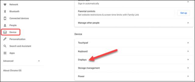 Sonra, "Cihaz" bölümüne gidin ve "Ekranlar" seçeneğini seçin.
