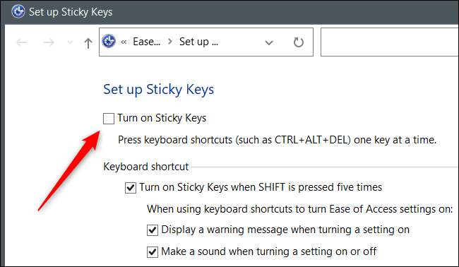Bir yol, Shift tuşuna beş kez basmaktır. Bu aynı zamanda nasıl başlamak için yapışkan tuşları açarsınız. Aynı zamanda onu devre dışı bırakır.