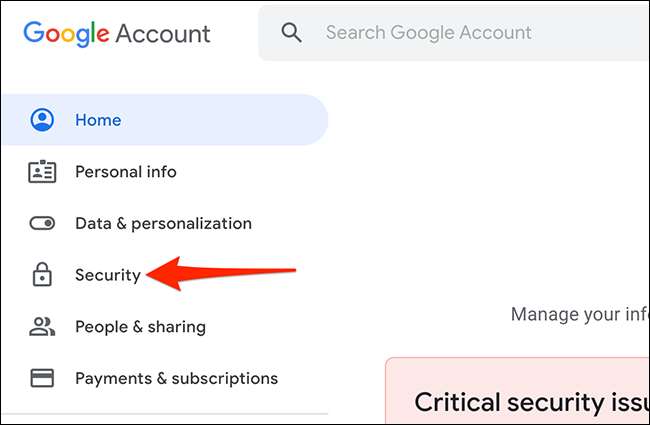 Site yüklendiğinde, soldaki kenar çubuğundaki "Güvenlik" seçeneğini seçin.
