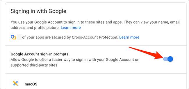 Bir sonraki sayfada, "Google'a giriş yap" bölümünde, "Google Hesabı oturum açma istemini" geçişini kapatın.
